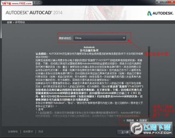 在协议界面中,我看在国家或地区中选择CHINA,然后认真阅读一下协议,看完协议过后,选择右下角的 “我同意” 勾选框,最后点击下一步按钮。 如图四。