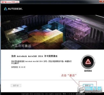 安装好后,请双击桌面上的AUTOCAD图标 进入2014CAD的激活过程。 如图一十二。