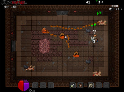 游戏中有血量、魔法、武器、护甲等。每个房间杀完所有怪掉落一把钥匙,可以开启邻近的门,杀怪会随机掉落装备。升级会出现三种选择,分别是攻击、暴击、击晕。有各种怪物,还有BOSS战。