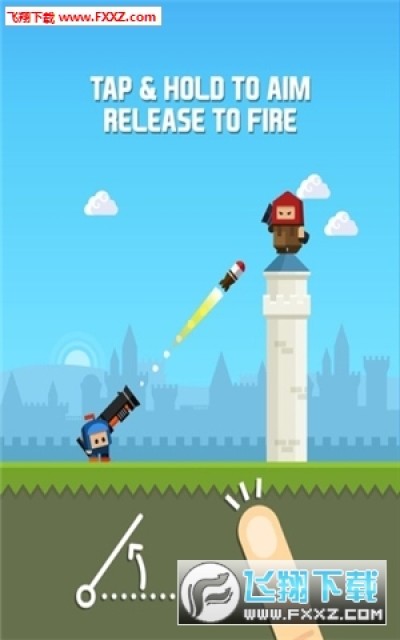 进入游戏以后点击屏幕就可以开始了,然后在游戏画面点击屏幕,按住不动,会有个瞄准线的东东,瞄准线会随着你按屏幕的时间来移动,当你确认好以后,松开屏幕就可以发射火炮了