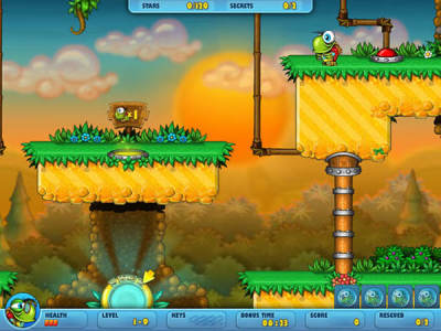 《寻宝小海龟2》是一款动作类游戏,游戏的的主角还是前作的小海龟Turtix,这次他将会穿过三个世界,拯救被困住的小海龟,引导他们绕过障碍与陷阱最终到达传送门安全回家,当然拯救小海龟的过程中也少不了各种宝藏、宝箱。