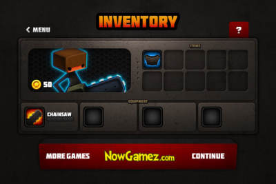 鼠标移动控制控制人物使用电锯消灭僵尸,Z、X、C、V使用物品或者技能(需要获取并装备)。过关后鼠标左键拖动道具/物品到格子中增加人物属性,还可以拖动装备上技能。