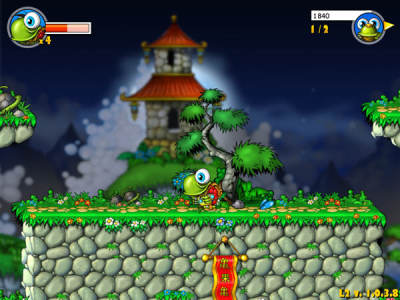 游戏作为一款动作类游戏,玩家将会扮演Turtix踏上探险路途,游戏场景中有许多的水晶需要你收集,在收集的同时要击败抓走小海龟的敌人,并救出小海龟。要注意的是踩中敌人后敌人是不会消失的,需要你按空格补一脚,之后才能踩碎笼子。放出小海龟后不需要你管,他会自己离开。