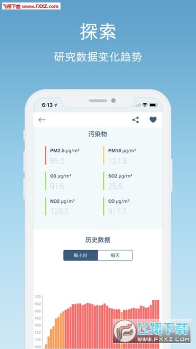 +实时监测六种主要污染物:追踪实时PM2.5, PM10,臭氧,二氧化氮,二氧化硫和一氧化碳浓度。