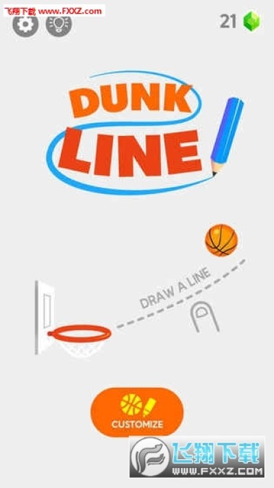 画线扣篮是一款简单的物理弹跳小游戏,一个小人会拿着篮球起跳,