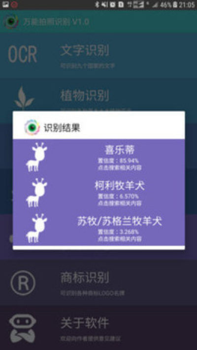 万能拍照识别是一个非常不错的手机拍照识别软件,该软件可以快速识别一些图片,目前该软件支持图片、文字、动物、植物等多种物品,非常方便好用,有需要的朋友不要错过了,欢迎大家下载体验万能拍照识别软件。