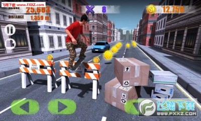 《街头滑板3DStreetSkater3D》,在小镇来一场滑板跑酷吧!3D画面,逼真模仿每一个滑板动作。多种操作模式可选,不管是虚拟按键还是重力感应,你要做的就是尽力避开每一个障碍。玩家可以在这里体验滑板运动的乐趣,更可以不断挑战自己的操和反应,快来试试吧!