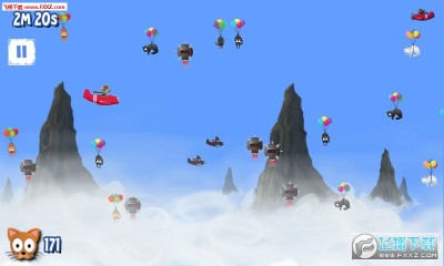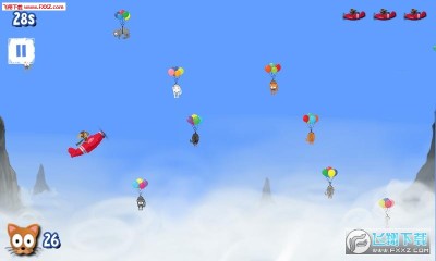 小猫和炸弹Cats & Bombs是一款躲避游戏,你所要做的就是开着飞机把被气球吊在半空的小猫救下来,同时还必须躲避漂浮炸弹。操作简单,点击就上扬,放手就下降