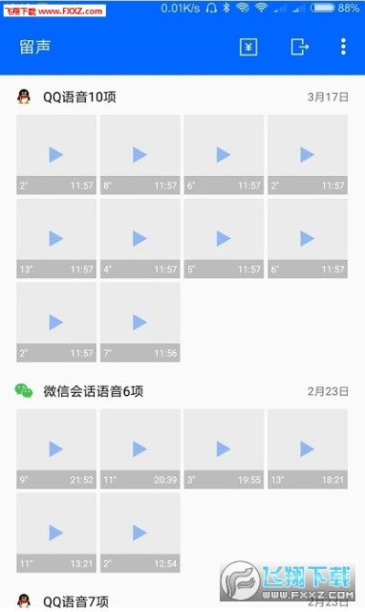 首先你需要下载一个名叫「留声」的App。「留声」的界面非常简单粗暴,就是把你手机中所存的所有语音都罗列了出来,可以导出、合成、分享QQ和微信的语音消息,并且可以以amr、mp3等多种文件格式保存。简直可以说是目前为止最方便、最快捷的语音消息导出和分享方式了~