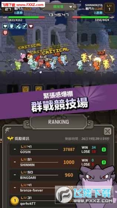 3、竞技场可以一次性容纳20名玩家,分成两组不同的队伍来进行PK,以及共同探索希望之森和火焰山等等部分场景。