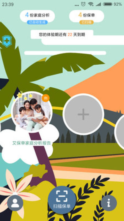 扫一扫功能,快速扫描纸质保单,整理保单内容,根据产品内容自动生成利益条款,最后生成家庭分析。拉近代理人与客户之间的距离
