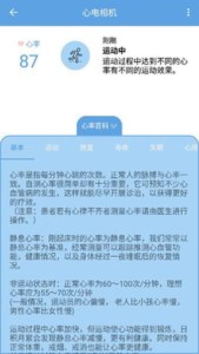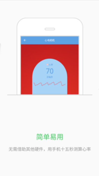 心电相机是一款手机上测心率的APP,只需手指轻按,即可测算心率。