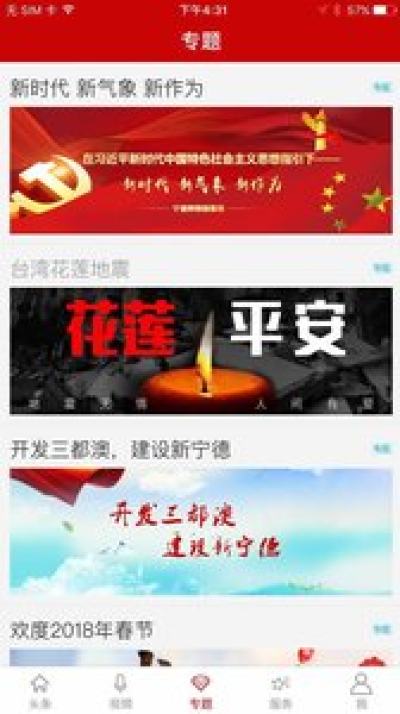 新宁德app是一款针对宁德市打造的社会新闻生活服务平台,这款软件是由闽东日报社打造的,在这款新宁德app上用户可以在手机上查询各种当地的相关时事,直播新闻,还有多方位的全面性生活服务平台,需要的快来下载吧!