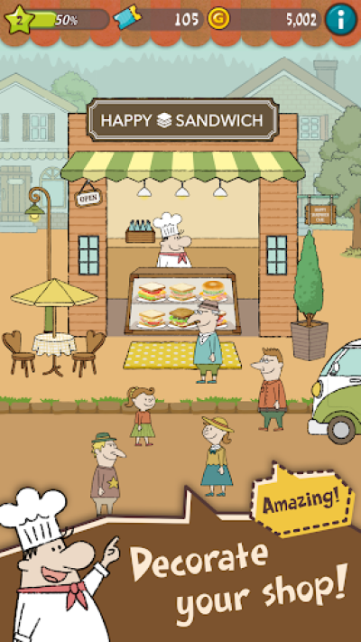 快乐三明治汉化版是一款养成经营类的手机游戏,游戏中玩家经营一家专供三明治的店铺,你需要学习更多的做三明治的技巧以满足客人的要求,为自己带来更大的收益。装修升级你的店铺使它更加美观。