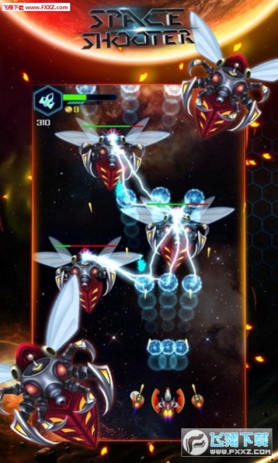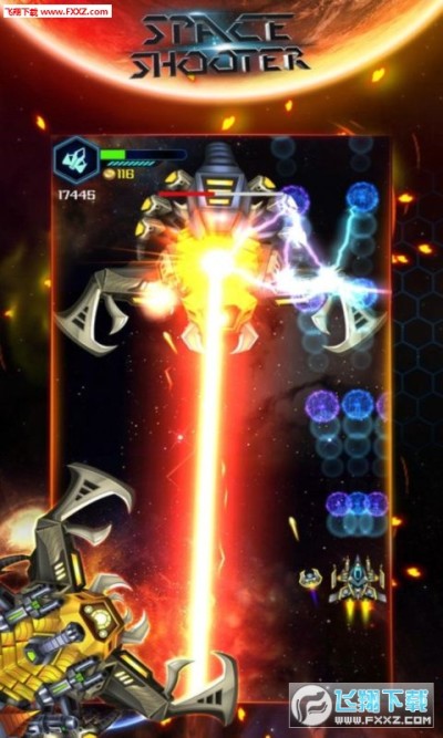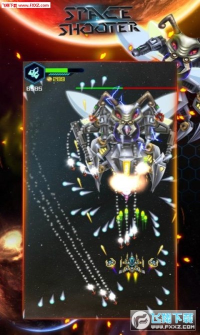 控制你的飞船去攻击你的敌人,随着游戏的进行,你将获得升级你的飞船的能量,这让你变得更加的强大,这样才可以和更多的boss去战斗。