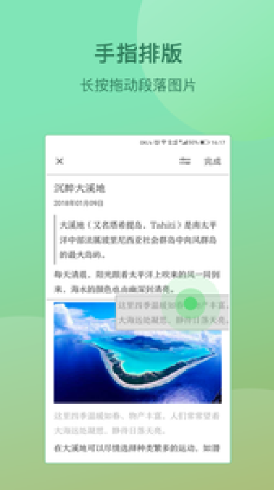 ■ 长按即可拖动段落或图片,自由派和懒癌晚期表示很nice;