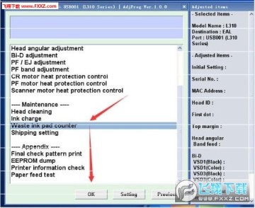 4.选择[Waste ink pad counter]然后点[OK]. 如下图。