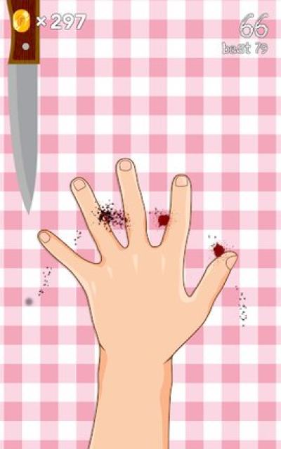 这款游戏需要你的注意力非常的集中,否则你的手指就很容易的掉,时刻注意刀的动作,不要让你的手指被切到,玩这个游戏非常的挑战你的心理承受能力,尽量不要碰到手指