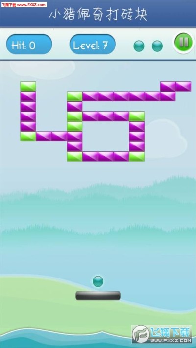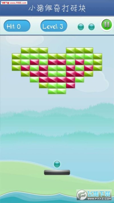 2、控制小球撞击淡绿色砖块,可一次消灭所有淡绿色砖块。