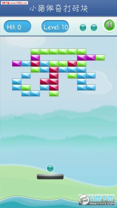 1、点击小球,打碎砖块,当小球遇到淡绿色的砖块,即可增强小球能力。