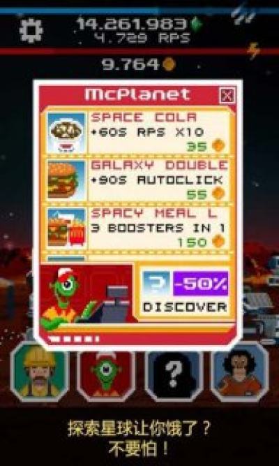 一个采矿增量的游戏,你挖掘不同的行星,卫星,小行星和彗星,帮助您殖民星系,建立自己的银河帝国的资源。游戏在一个小月亮般的星球上开始,在那里你可以通过点击它收集资源,然后再投资,招新的矿工,升级不同的材料,提升机器的性能。这仅仅是个开始。