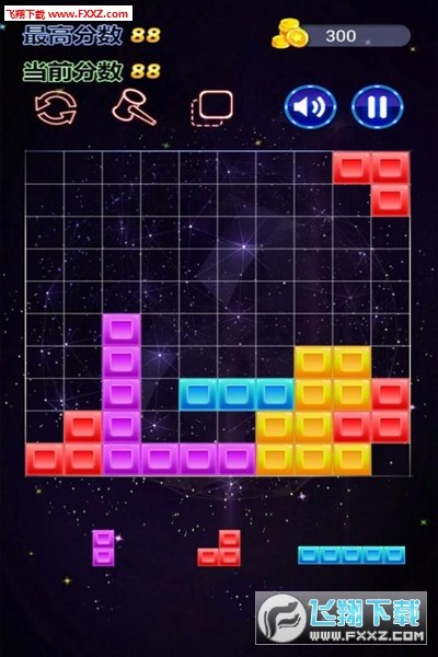 玩法简单,可以看作俄罗斯方块的升级版本,移动方块满足条件,可以消除得分。