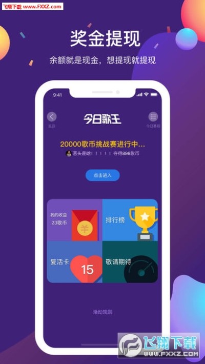 1、免费即可参与今日歌王夺金赛,猜对6首歌即可通关,当场瓜分百万收益!