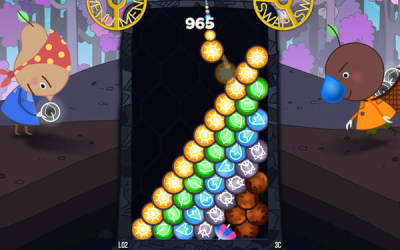 你将会尝试这个100关的消除游戏,消除的同时不断向下深入直到到达最深处的boss的位置,挑战自己获得更多的分数。游戏中除了常规的小球之外还有更多的类型的物体,如坚实的地面,滚动但是不消除的木球、一撞就碎的冰块等等,每一种都有其属性,只有针对其属性才能顺利过关。