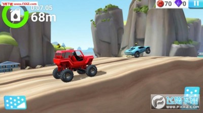 《MMX爬坡赛车2》与前作不同的是背景从城市延伸到了热带丛林和冰川峡谷,恶劣的环境让游戏的难度增加,游戏既然主打越野竞速,自然拥有高难度的崎岖路面。玩家必须谨慎控制车辆行驶,应对不同路况保持赛车平衡,这也是游戏给予玩家的最大挑战。此外,本作的座驾也有所增加,不仅有基本的越野车,还加入了坦克、怪物、马车、四轮自行车以及两栖动物,可谓是丰富多彩,玩过前作的朋友一定也要期待下《MMX爬坡赛车2》。