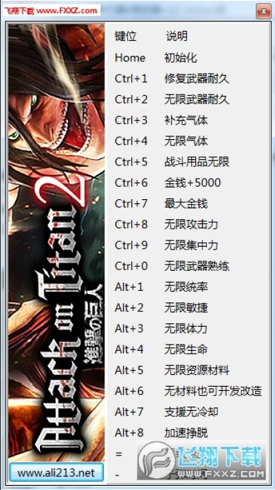 进击的巨人2二十一项修改器是针对进击的巨人2设计的一款辅助工具,这款游戏的难度不小,所以就需要这个辅助工具的出现啦,多达21项的修改,让你畅快体验这款游戏,需要的小伙伴赶快下载吧。
