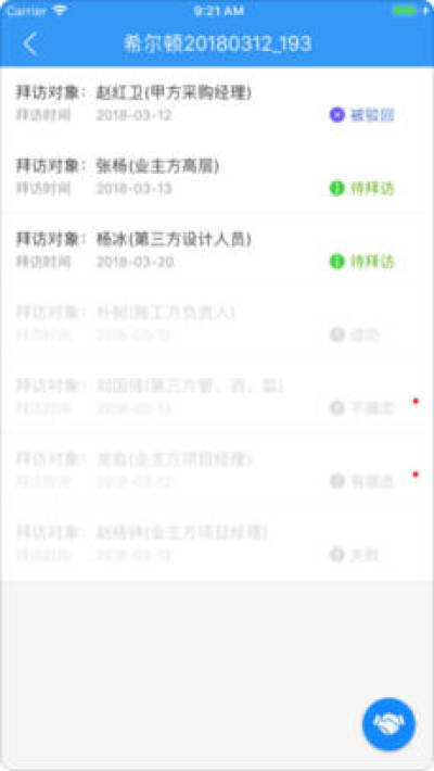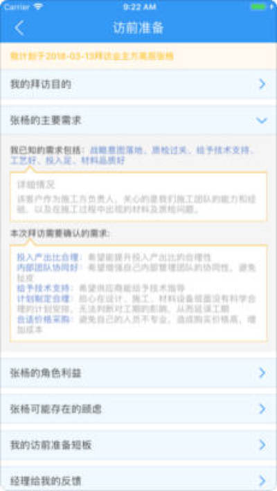 《快签单》重点管理销售中最重要的行为:销售拜访与沟通;通过内嵌的拜访方法论,指导销售人员高质量的完成拜访,《快签单》涵盖了拜访准备、需求萃取、行动承诺设计、行动承诺获取、顾虑处理、员工辅导等多个环节。内嵌了销售拜访、销售辅导、销售会议、销售总结、销售复盘等多个工作场景,同时集合了上百家工程建筑供应商企业的成功销售经验,萃取了上千个销售工程项目的销售智慧。是专门为工程建设项目销售量身定做的一款APP;适合:外墙材料、酒店与办公家具、厨房用品、电梯、灯具照明、门窗、五金、卫浴、地材等细分行业面向工程的销售模式。