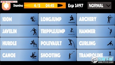 比赛:100米跳远,射箭,锤击,三级跳远,掷铁饼,110米栏,撑杆跳,冰壶,独木舟,射击,蹦床