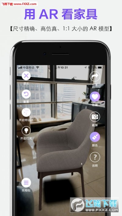 -截屏:提供AR预览界面的截屏功能,家居适不适合客厅,截屏下来分享给好友一起帮忙看;