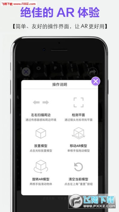 -实时互动:在真实场景中进行摆放、移动、旋转、清除AR模型;