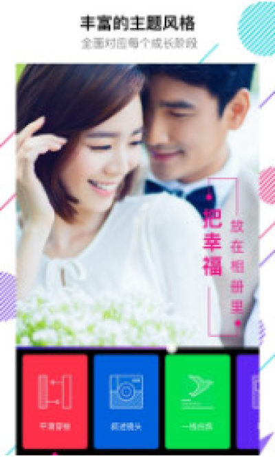 我们对于婚纱照,宝宝照,旅游照,朋友聚会,成长记录,自拍等不同场景我们提供了针对性主题动效;每个 转场与每个Scene的动画根据主题伴随着音乐的节奏来Design。