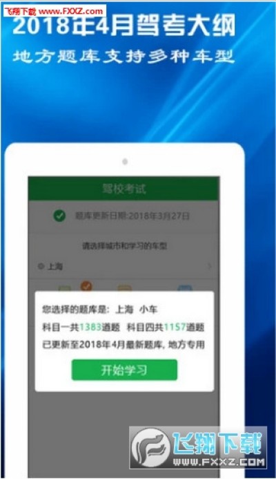 1、实时同步2018年4月驾考科目一科目四题库,在线练习和模拟考试一应俱全;