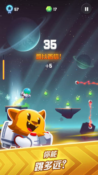 史上最疯狂的太空极限竞赛游戏《宇宙跳跃》横空出世!28名以上超前卫英雄任君挑选,他们全都整装待发,随时可以朝着冒险挺进!立刻投身这款简单好玩的银河街机游戏,带上你的喷气背包,去星际间自由翱翔,在宇宙中流连忘返!来吧,跟我们来场说走就走的宇宙旅行!