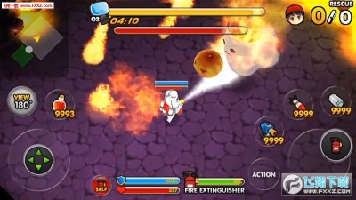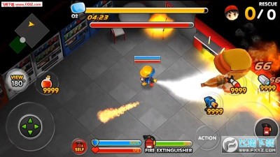 操作简单,一目了然。左边虚拟按键控制消防员移动;右边的灭火器多种可选。玩家需要根据情况使用不同的灭火器扑灭大火。不要使用高级的灭火器去扑小火,很浪费的,注意合理利用资源。