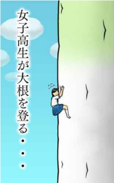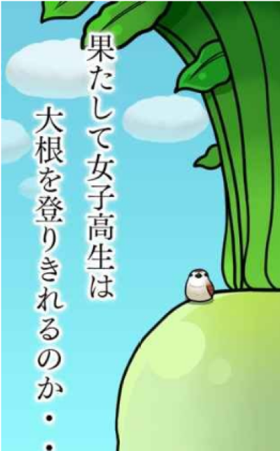 迎入眼帘的是一个不成比例的巨大萝卜, 以及紧抱着它的女高中生