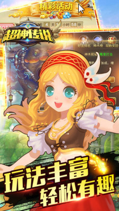 超神传说是一款角色扮演类的手机游戏。快和你的小伙伴一起进入一场奇幻之旅吧。这里玩法丰富,轻松有趣。超神传说还有萌宠相伴,带你一起驰骋沙场。喜欢的玩家来体验一下吧!
