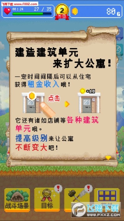 旅馆内可以增筑各类房屋和店面,素材可以去迷宫内欺负小怪获得!