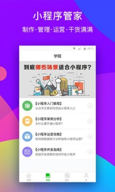 微信小程序管家软件是一款针对关心小程序管理的手机app,这款软件可以直接在手机上管理自己的小程序,通过微信小程序管家app来查看对应小程序的数据等等,还能学习各种小程序的知识呢,非常全面,需要的快来下载吧!