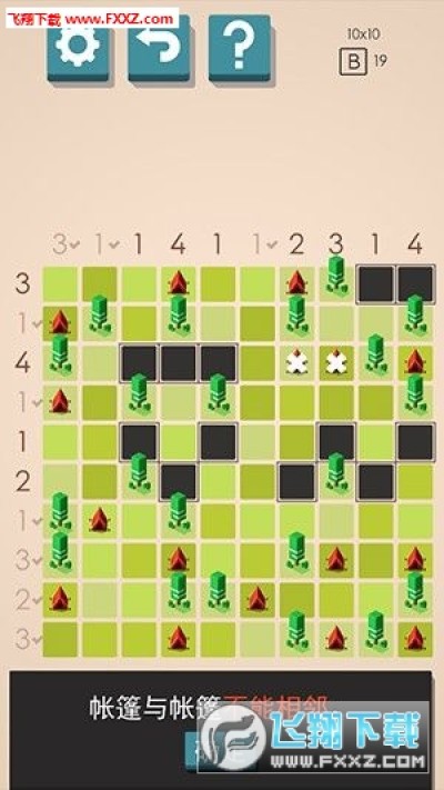 《帐篷与树谜题》烧脑的简约风格益智游戏。玩家需要仔细观察界面上的帐篷和树木的分布,根据规则,每棵树都得挨着一顶帐篷且帐篷与帐篷不能相邻。慢慢尝试,你就能发现一些规律。玩家需要有耐心和一定的观察能力。考验智慧的时候来了!