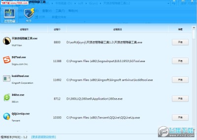 2、选择需要隐藏的软件进程,点击“开启”使用隐藏功能