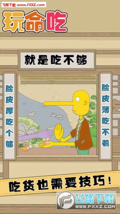 玩命吃--全球首个吃货游戏!脸皮厚吃个够,脸皮薄吃不着,爱吃不可耻,吃,是一种精神,只有填饱肚子,才不会空虚!本世纪最富创意游戏,三种挑战模式快来试试吧!
