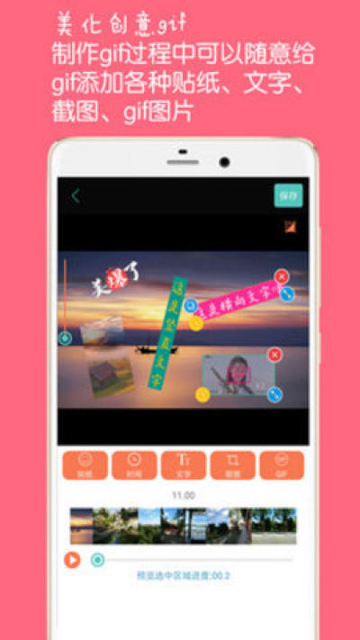 5、可添加任意数量的文字、贴纸、自定义图片、GIF图片到要制作的GIF中