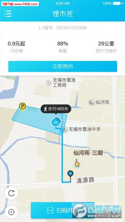 打开锂市民APP扫描车身二维码,即可查看车辆当前电量,预计可骑行里程等详情,点击解锁即可开始用车