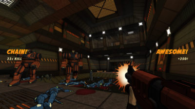 游戏采用的是类似于无主之地的卡通风格渲染,显得很精致。游戏中包含了多种的武器,每种的特点都不相同,配合有的武器你甚至能够使用火箭跳这种技能。游戏的移动速度相当的快,这样游戏的节奏也变的快了起来。全程高速的移动,和大威力的武器联动,成片倒下的敌人给你一种畅快的游戏体验。