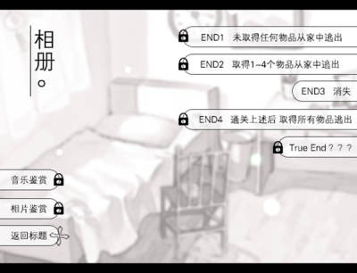 游戏开始的时候内容相当的短,你只需要收集物品,然后离开就结束了。只有将前三个结局打出来之后,才能进入隐藏的故事剧情,才能打开第四第五个结局,了解故事的真相。