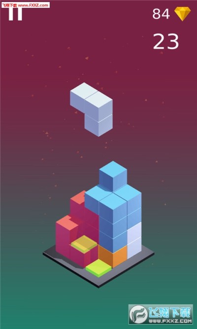 没有方块下落,不爽…这直接给这个立体的俄罗斯方块增加了不少难度,还有这蛋疼的操作,直接移动方块塔,这也就意味着你的方块只能下落在不同角度的同一个位置,所以局限性相对来说还是比较大的。